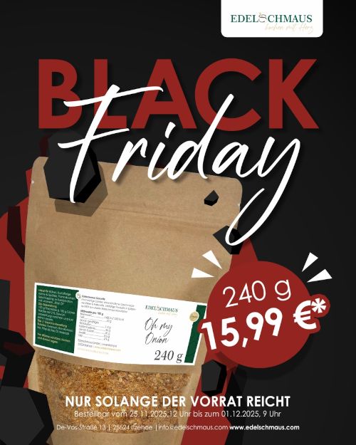 Unsere unschlagbare Black Friday Aktion: Oh my Onion im 240g Kraftbeutel Gültig vom 25.11. bis 01.12.2025.
