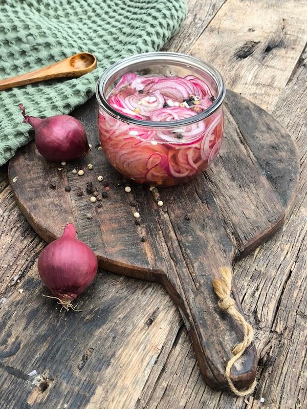 Am besten schmecken sie nach 1-2 Tagen. Zwiebeln zum Naschen aus dem Glas, für Gemüsepfannen, Burger, auf Brot, Salate, Couscous uvm.
